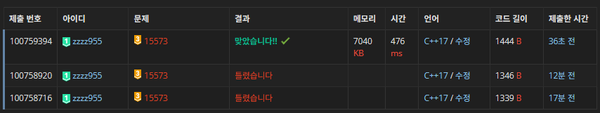 시간이 생각보다 느려서 최적해인 방법은 아닌듯 하다.