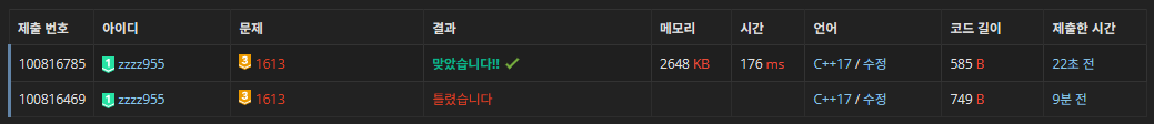 - 순서가 일치하는 경우에만 -1 혹은 1로 갱신하는 로직으로 변경하여 AC를 받았다.