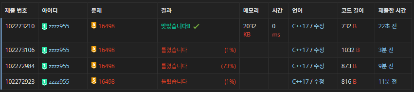 - 3포인터 방식으로 리팩토링하여 제출 시 AC를 받았다.